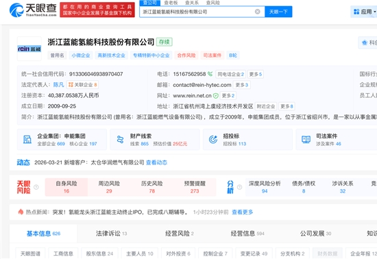 - 简介:4月8日,盖世汽车获悉,国内氢能储运装备龙头浙江蓝能氢能科技股份有限公司(下称 "浙江蓝能")主动暂停 A 股上市进程。国泰海通证券4月3日发布公告,经与浙江蓝能友好协商,终止对其IPO辅导工作,联席辅导机构东方证券同步终止相关工作。...[详细]