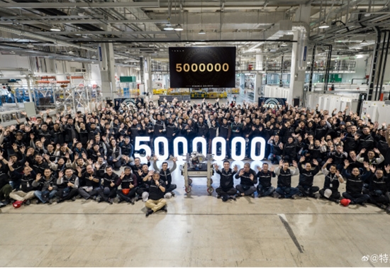 特斯拉上海超级工厂第500万台电驱系统下线