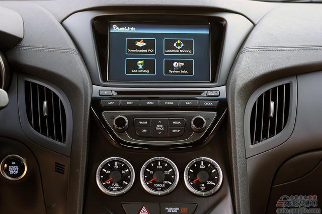 车型更新不止于性能。车仓内部的材料经过升级,虽不至于让人惊艳,但是更加高档。最大的不同点在于中控台上的3筒仪表,实时显示油耗、V6的扭矩输出或2.0T的增压值、润滑油温度。升级还包括,3.8 Grand Touring、3.8 Track和2.0T Premium车型上的远近可调方向盘和Blue Link交互系统。