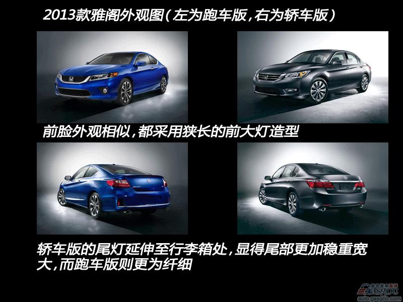 本田近日发布了2013款雅阁的轿车与跑车车型的外观图。其概念车曾在底特律车展上展示过,与目前版本相比,可以说外观上并没有多大改动。