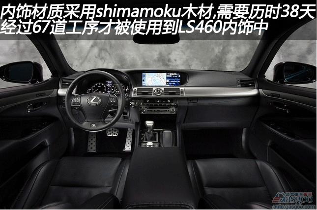 LS460的内饰可以用豪华来形容。从车门到仪表板采用了无缝连接技术,另外内饰材质采用shimamoku木材,经过67道工序历时38天后在LS中使用。