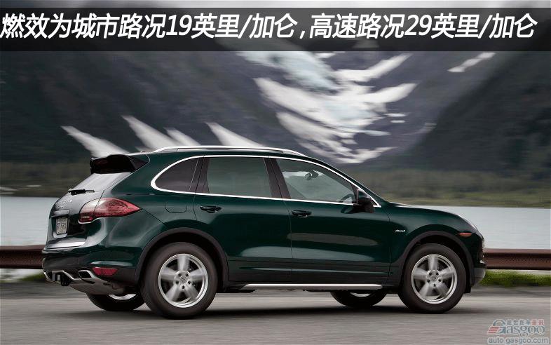 官方公布其燃效数据为,城市路况19英里/加仑,高速路况29英里/加仑,超越了搭载V6汽油机的车型(城市路况16英里/加仑,高速路况23英里/加仑),也将卡宴S混动车远远甩在后方,其城市/高速路况燃效分别为20英里/加仑和40英里/加仑。卡宴柴油版基础售价56,725美元,是卡宴系列中第二便宜的车型。