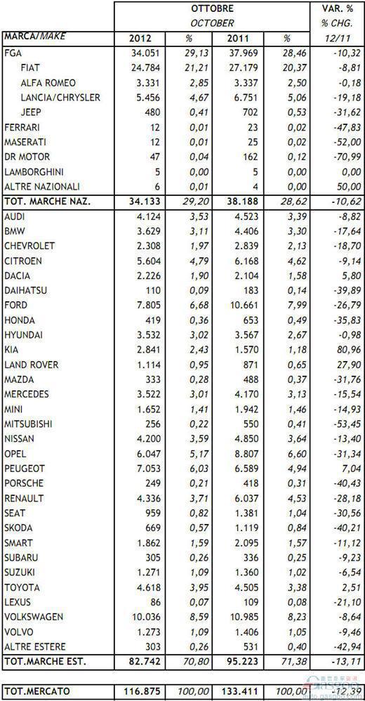 2012年10月意大利新车注册量统计(分车企)