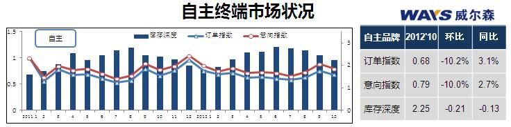 自主品牌并没有受惠于日系市场份额的下滑。10月终端意向及订单双双环比下降一成,回归今年8月水平。金九银十,自主品牌经历冲高回落,传统销售旺季只能为销售短期给力,自主品牌正积极寻求其长期的稳定利好因素。近日,广汽传祺与奇瑞汽车的报团合作,期望通过优势互补、协同效应来节约大量成本,实属自主品牌自强的又一重要举措。