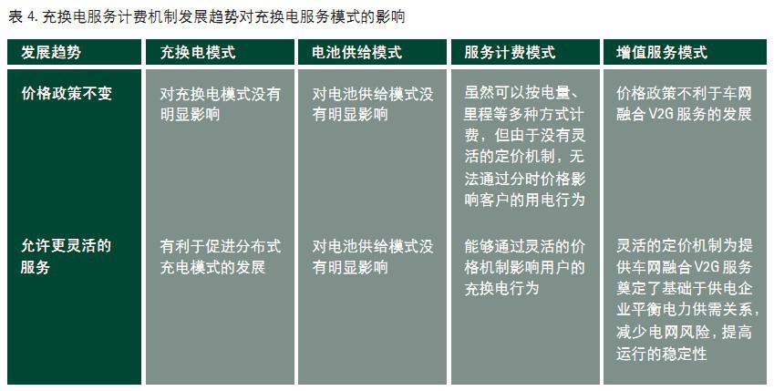 由于未来定价机制是否会改变以及何时变化仍存在不确定性,因此表4分析了定价机制发展趋势对充换电服务模式的影响。