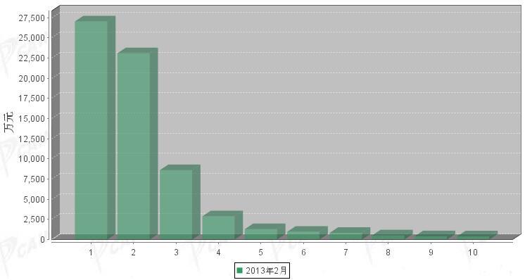 2013年2月传动系统零部件分国别进口金额排行