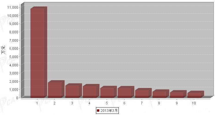 2013年3月制动系统零部件分国别出口金额排行