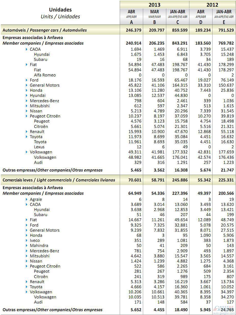 2013年4月巴西轻型车销量统计(分车企)