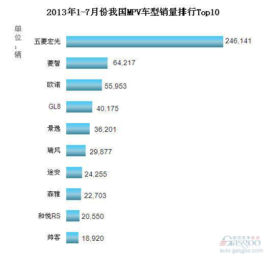 2013年1-7月我国MPV车型销量排行Top10