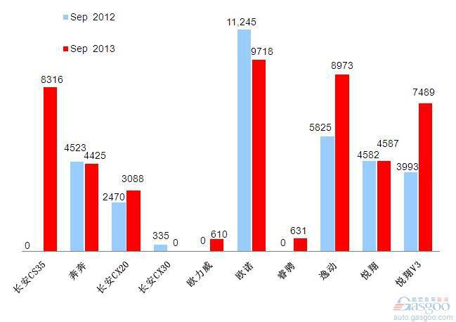 2013年9月前十车企产品销量图—No.10长安汽车