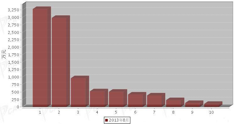 2013年8月制动系统零部件分国别进口金额排行