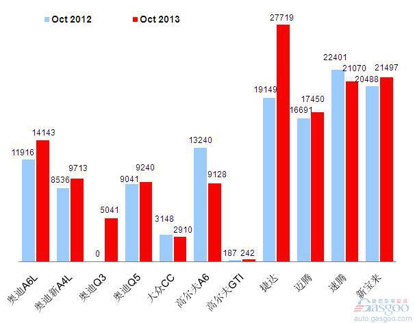 2013年10月前十车企产品销量图—No.1一汽大众