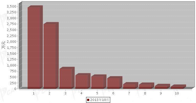 2013年10月制动系统零部件分国别进口金额排行