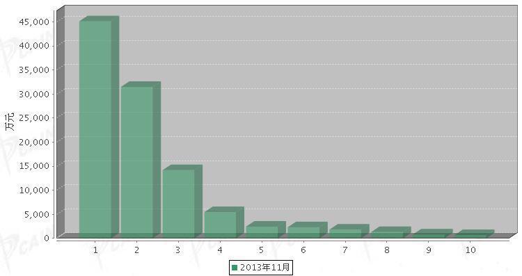 2013年11月传动系统零部件分国别进口金额排行