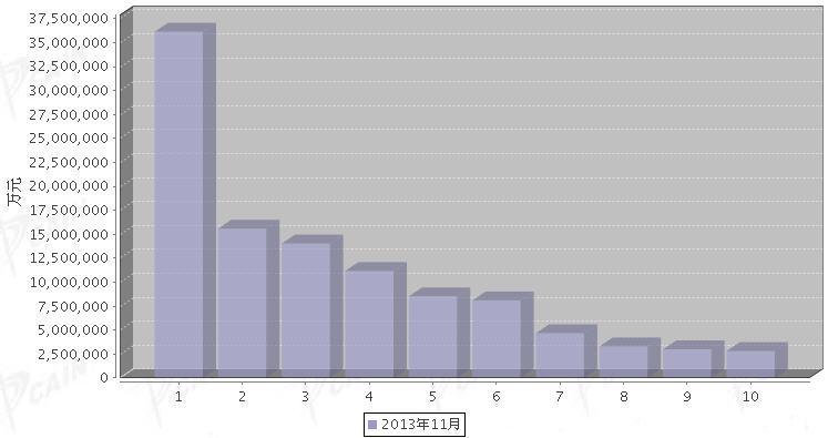 2013年11月汽车发动机产品分国别出口金额排行