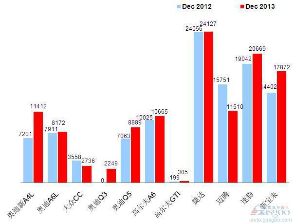 2013年12月前十车企产品销量图 —No.2一汽大众