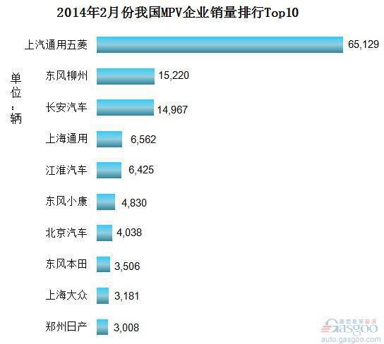 2014年2月份我国MPV企业销量排行Top10