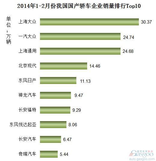 首页 > 资讯 > 2014年1-2月份我国国产轿车企业销量排行Top