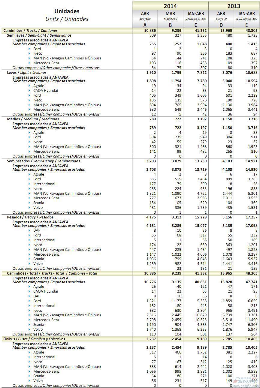 2014年4月巴西商用车销量统计(分车企)