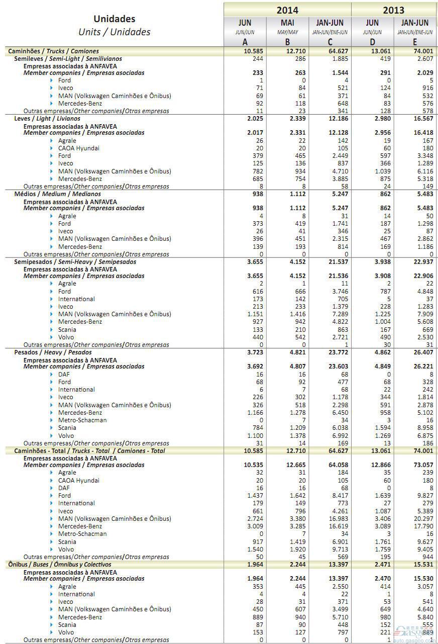 2014年上半年巴西商用车销量统计(分车企)