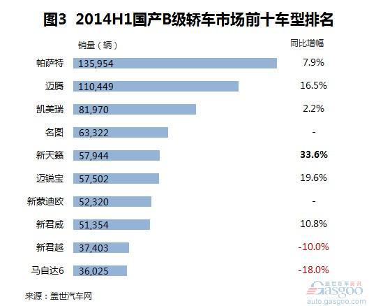 2014上半年国产B级轿车销量分析