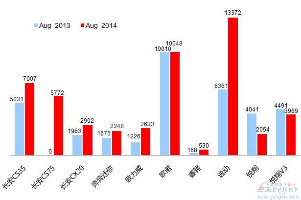 首页 > 资讯 > 2014年8月乘用车前十车企销量图—No.9长安