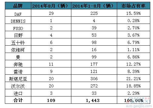 2014年8月爱尔兰重型商用车新车销量统计