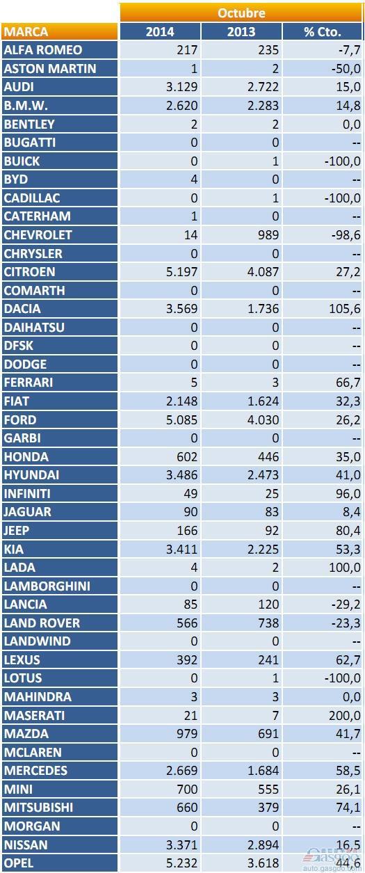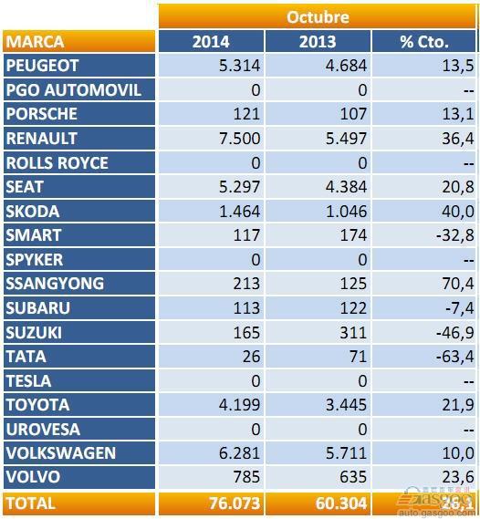 2014年10月西班牙乘用车注册量(分品牌)