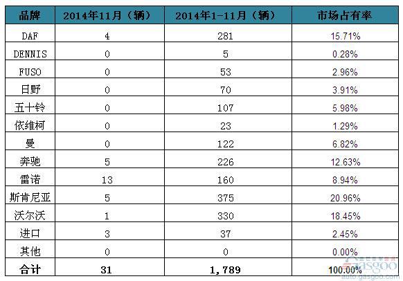 2014年11月爱尔兰重型商用车新车销量统计