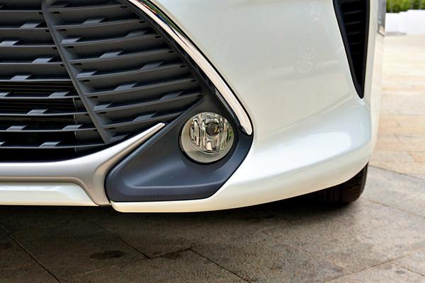 大灯造型变得更加修长,内部“双L”的新造型让其更加时尚。下格栅被全 面放大,并开成梯形形状,有雷克萨斯纺锤前脸的味道。