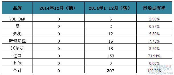 2014年爱尔兰客车销量统计