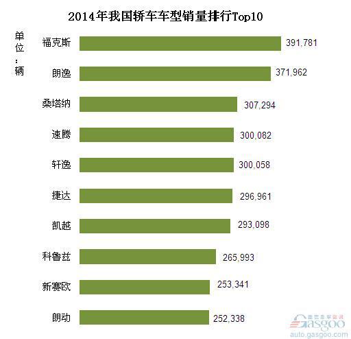 2014年我国轿车车型销量排行Top10