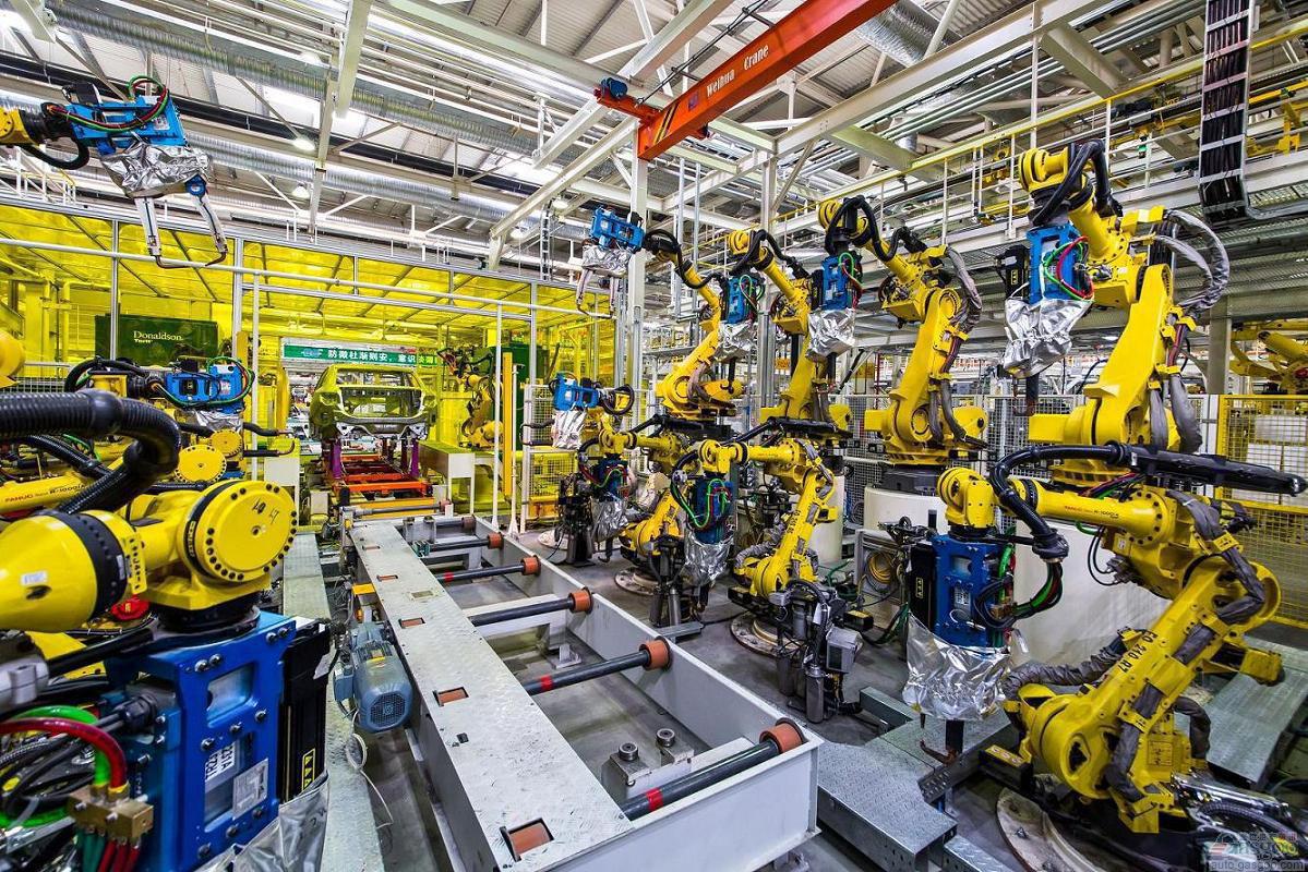 -首次使用轻量化机器人,并配轻量化焊枪。车身主线单工位6台机器人全部使用R-1000iA系列轻量化机器人,运动速度快,体积更小,匹配轻量化焊枪可迅速提升工作效率,同时单个焊点能有效节约电能20%,更加环保节能。
