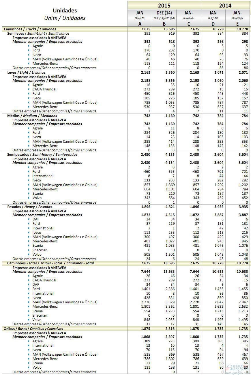 首页 > 资讯 > 2015年1月巴西商用车销量统计(分车企)