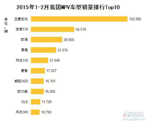 2015年1-2月我国MPV车型销量排行Top10