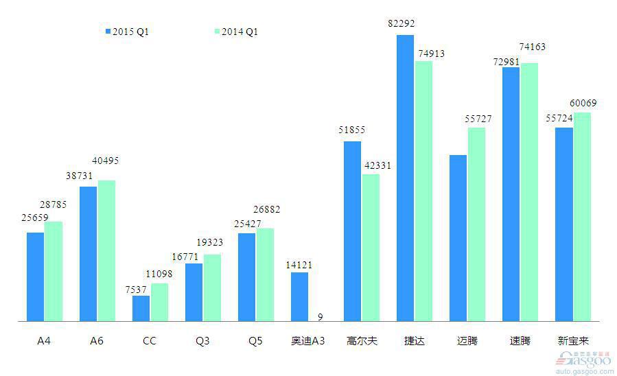 2015年一季度前十车企产品销量图—No.2一汽大众