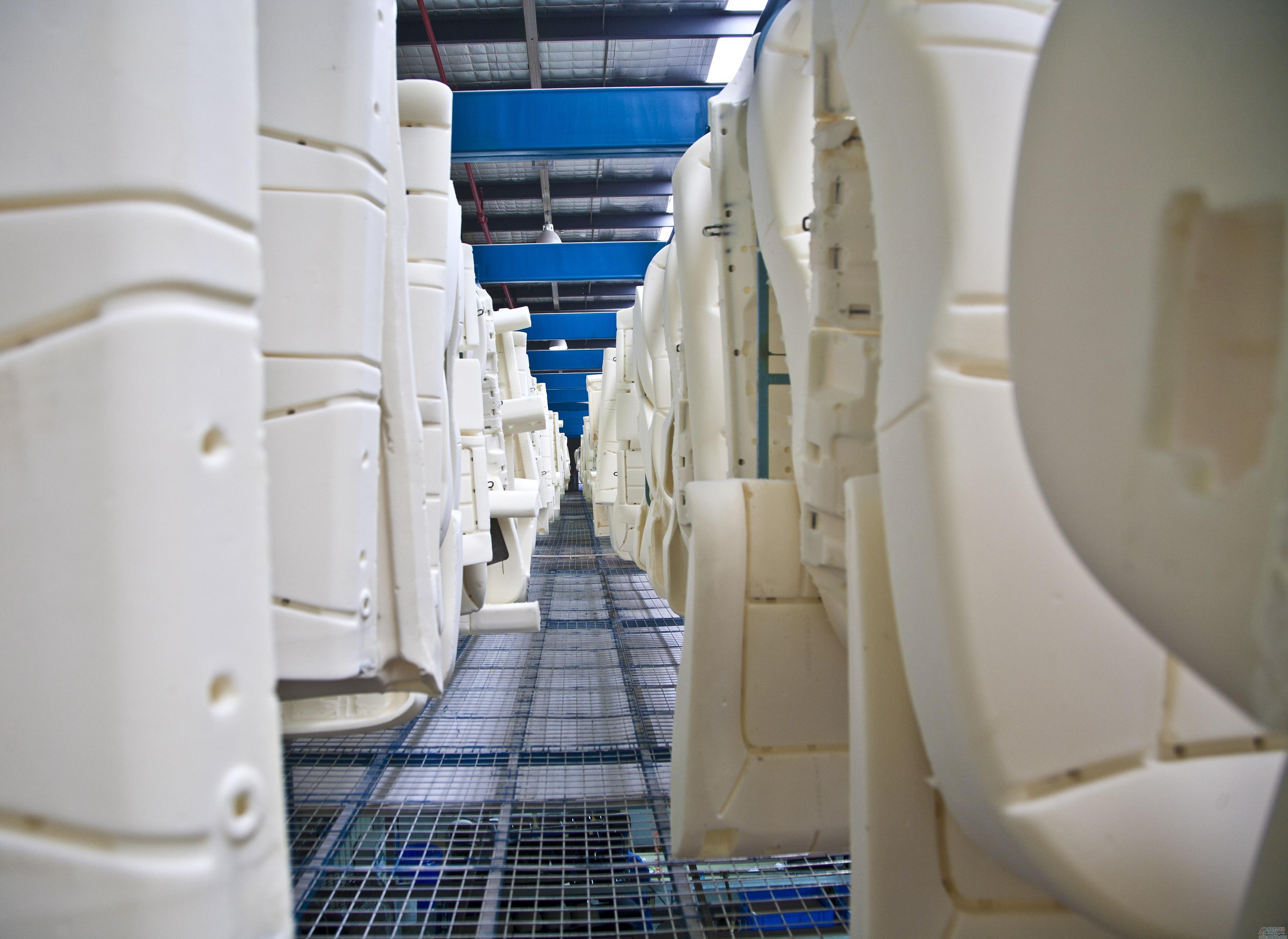 不过,江森自控自2008年开始研发MDI和TDI混线生产的方式,目前已经在工厂里面开始量产。这条线的特殊性在于既可以生产MDI产品,又可生产TDI产品,另一方面从舒适性考虑,在一块泡沫上部分用 MDI,部分用 TDI,满足不同客户需求。今年的上海车展大家会看到这样的产品.