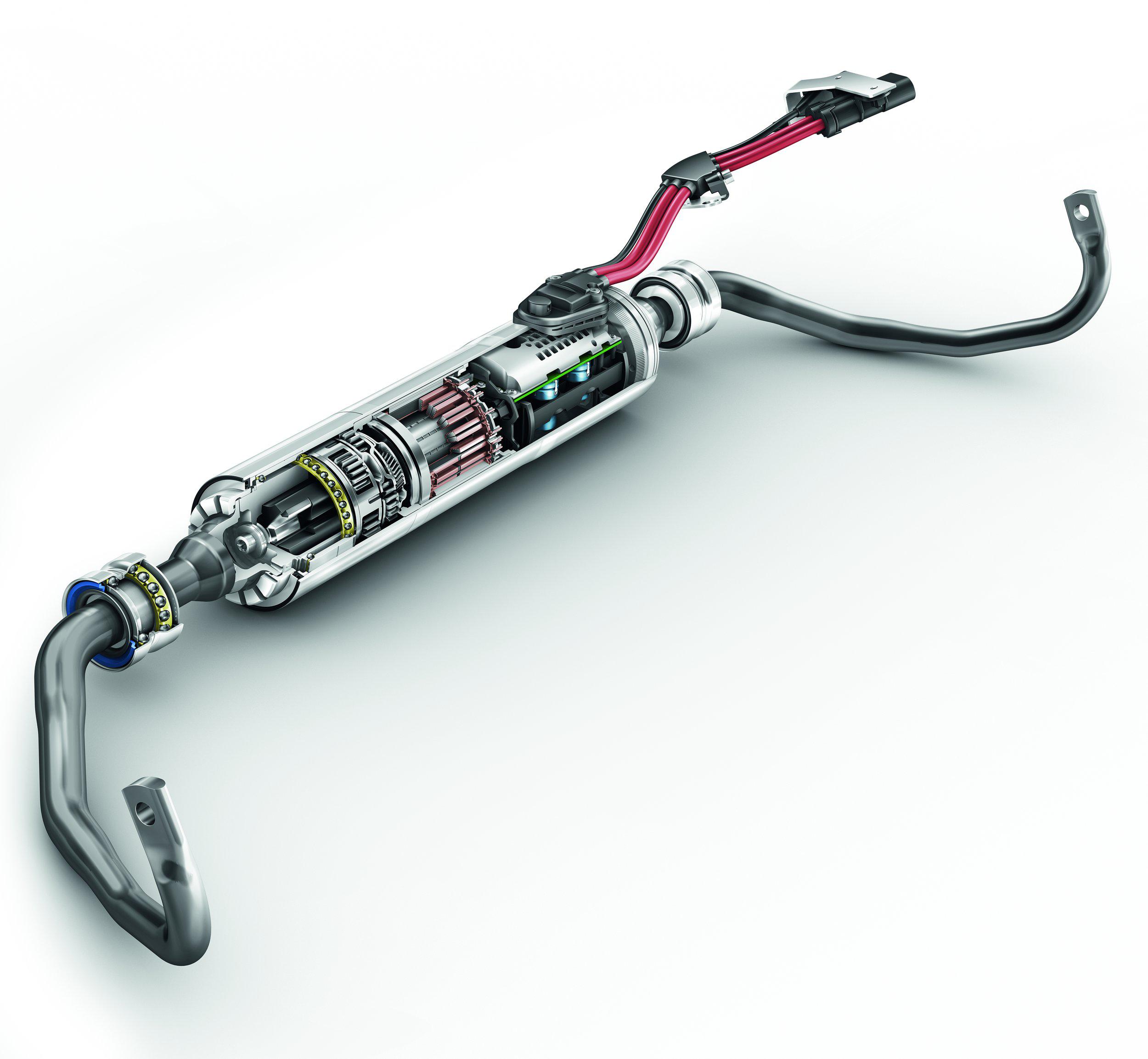 舍弗勒底盘部门开发的机电式横向稳定杆系统由电机、电子控制模块(ECU)、行星齿轮传动系(多极)、扭矩传感器和弹性解耦装置组成,适用于12V和48V电压(执行机构)。