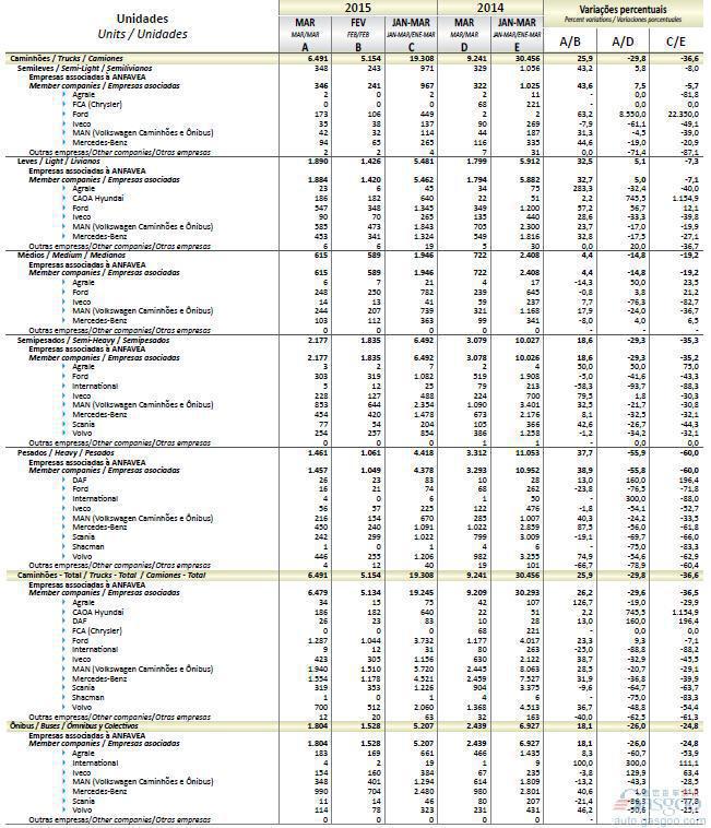 2015年3月巴西商用车销量统计(分车企)