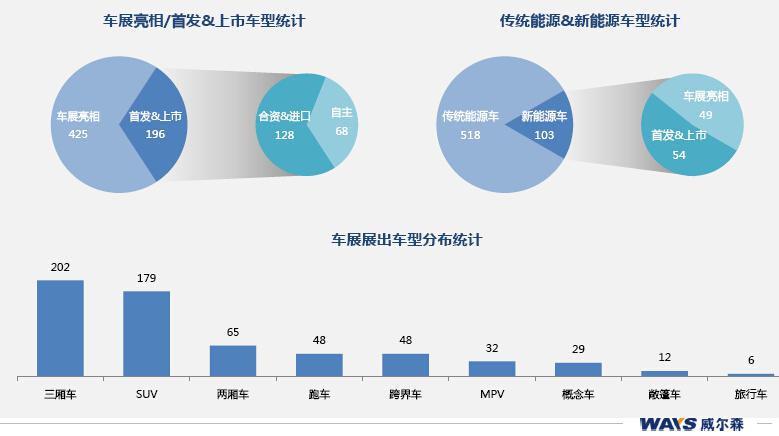 本次上海车展共有621款乘用车参展,其中首发和车展期间上市车型共计196款;