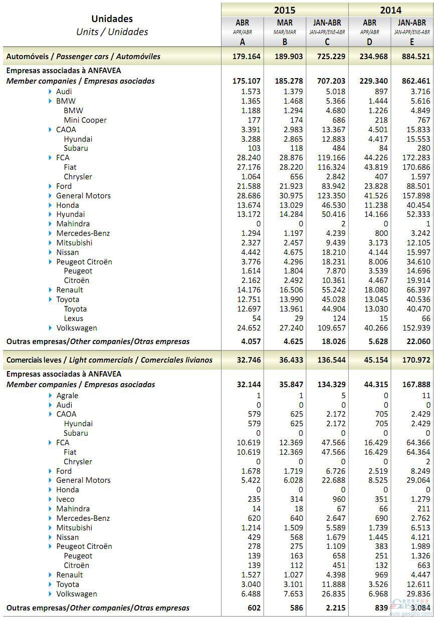 2015年4月巴西轻型车销量统计(分车企)