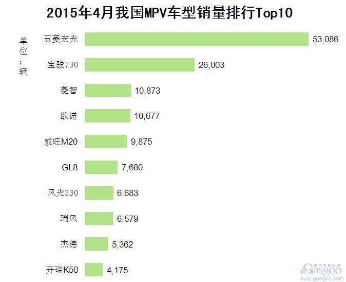 2015年4月我国MPV车型销量排行Top10