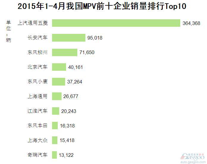2015年1-4月我国MPV前十企业销量排行Top10