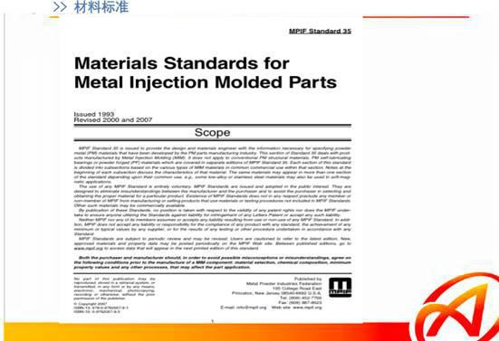 对于MIM材料的性能,已经发表了国际标准,MPF标准35, 国内行业标准也在制定当中。大家可以参考查阅。产品的尺寸公差以及其他类标准公差,大多数公司目前都可以达到。