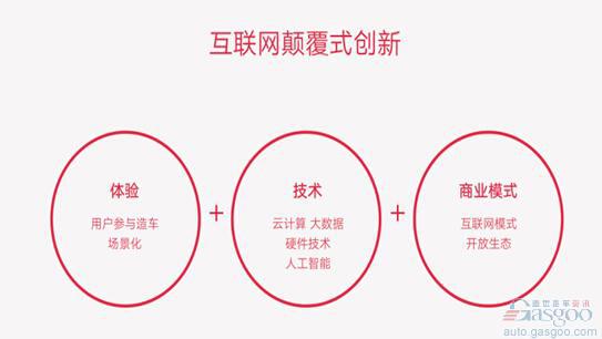 3、商业模式上的颠覆:我们将通过互联网模式,开放汽车生态圈,将车与车、车与路、车与车、车与人之间的场景和服务都无缝地联系起来。