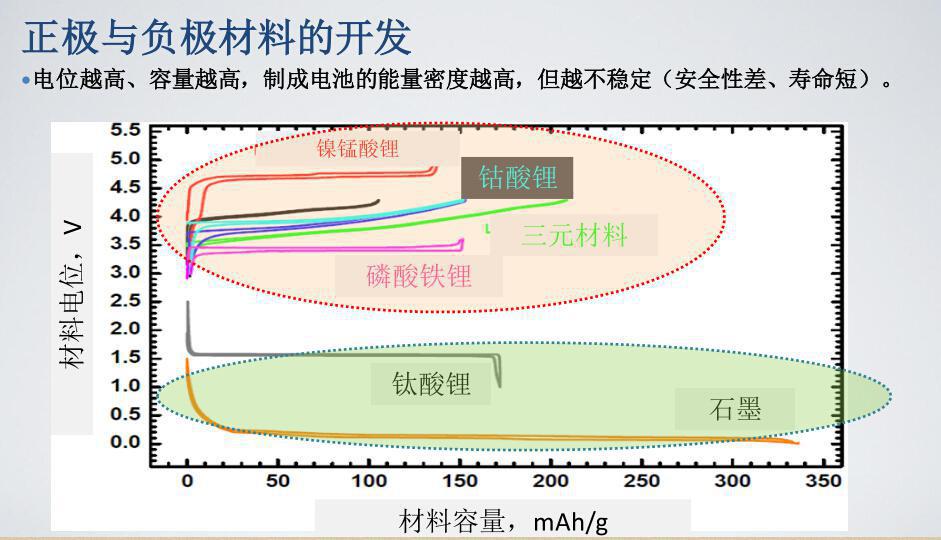 锂电池分为正极和负极两个材料。我们经常说的磷酸铁锂、三元材料这些其实指的是锂电池的正极。现在在全世界有成千上万的实验室都在试图开发性能更好的锂电池,其实大家无非是想在金属氧化物中寻找一种性能更好的、容量更高、寿命更长,或者是充放电的功率更好的一些正极材料,或者是在负极上下功夫。我们通常用的比较多的锂电池的负极材料是石墨,但是最近这些年也出现了一个新的负极材料,就是钛酸锂。