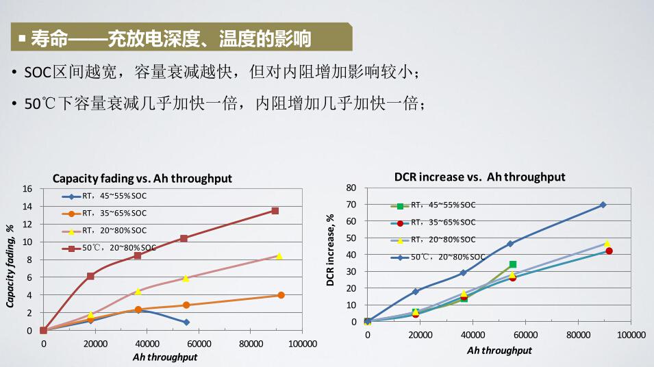 在快充体系之间,电池温度是影响它寿命最大的杀手,50℃下容量衰减几乎加快一倍,所以温度控制是非常重要的。