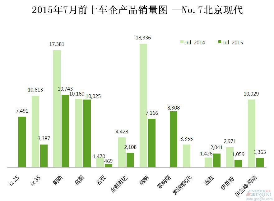 2015年7月前十车企产品销量图 —No.7北京现代