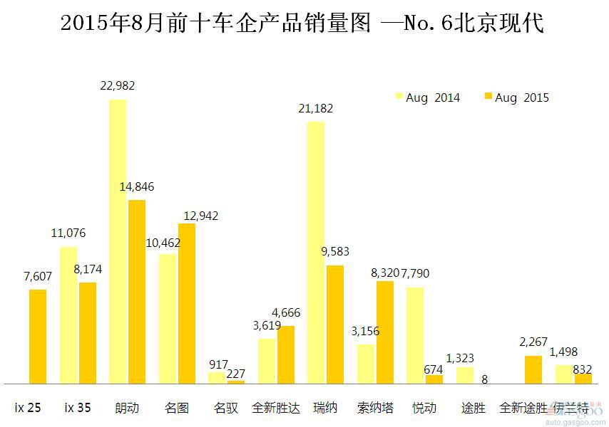 2015年8月前十车企产品销量图 —No.6北京现代