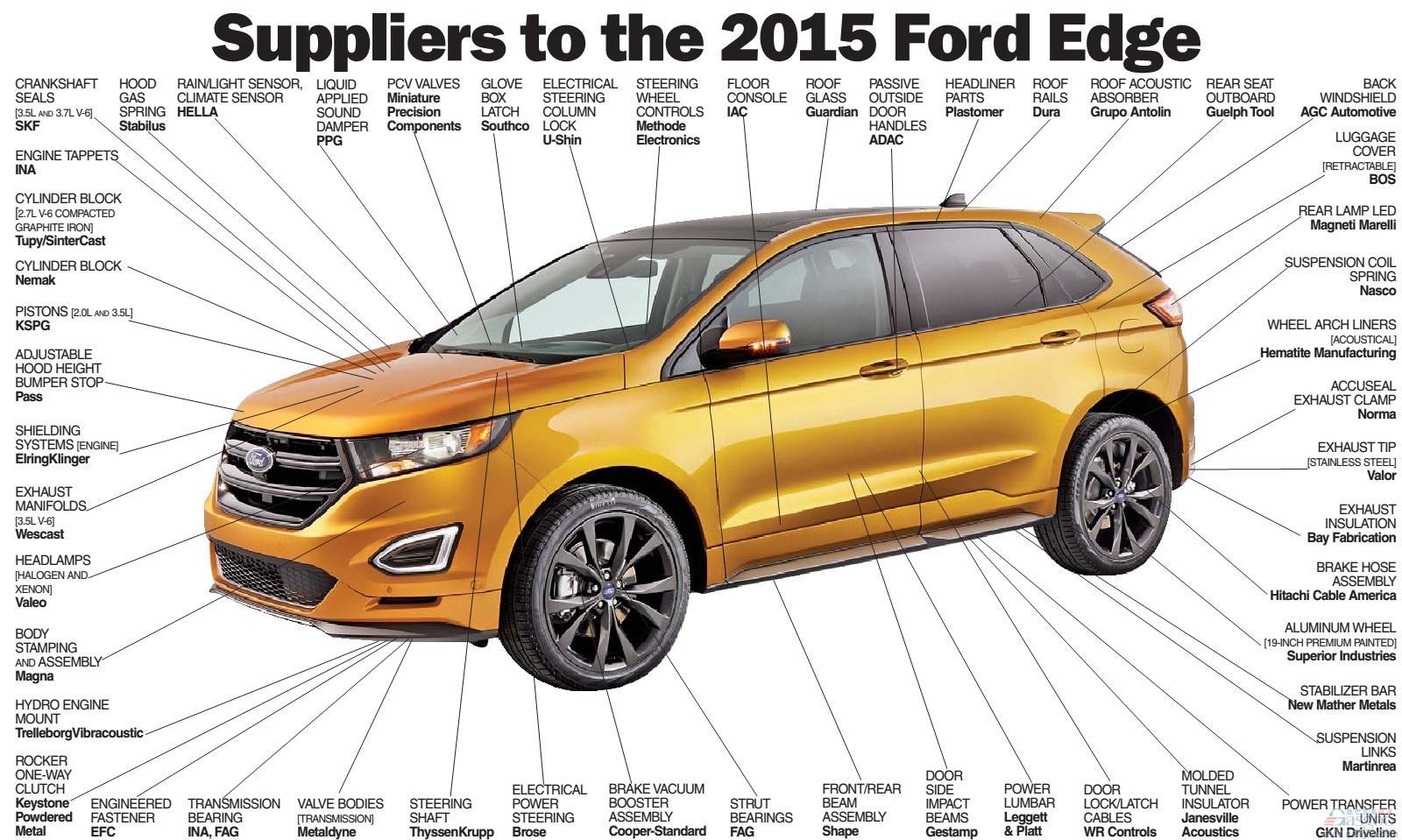 盖世汽车讯 日前盖世汽车整理了北美版2015款福特锐界的主要配套供应商,具体情况如下。
